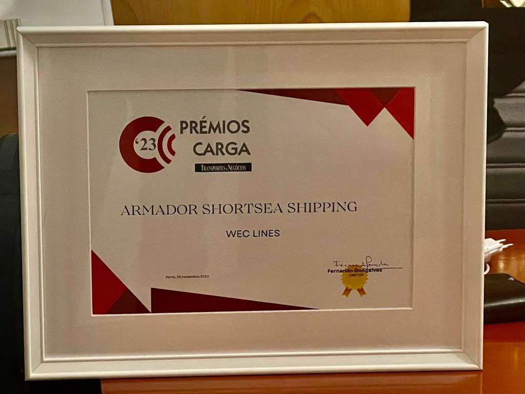 WEC Lines has been voted as the best Short Sea Carrier in T&N Prémios Carga ’23, as organized by Transportes & Negócios in Portugal.