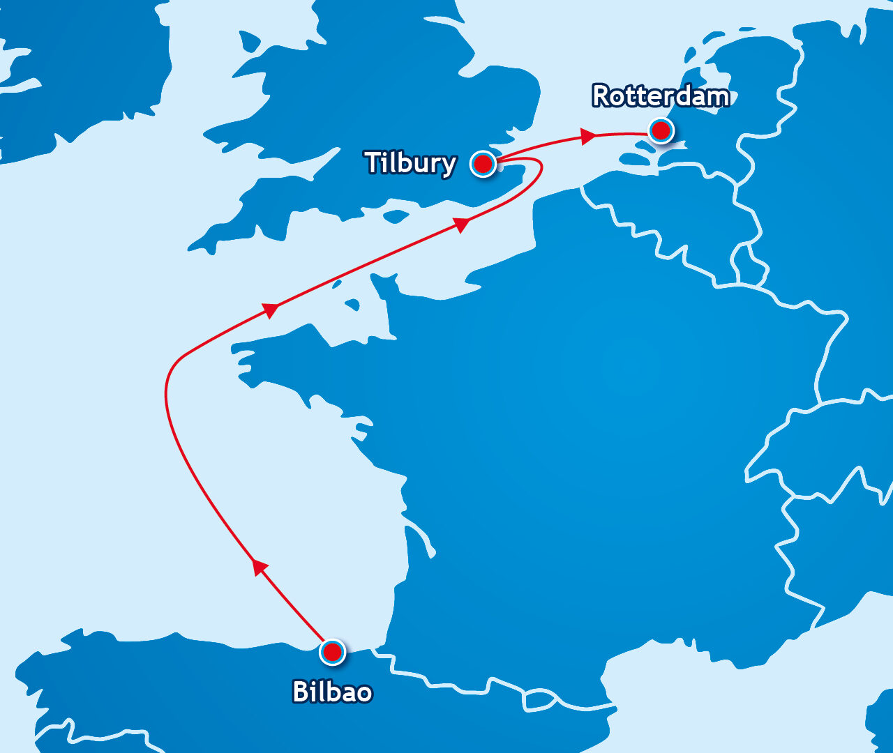 • Includes key ports: Bilbao, Tilbury and Rotterdam
